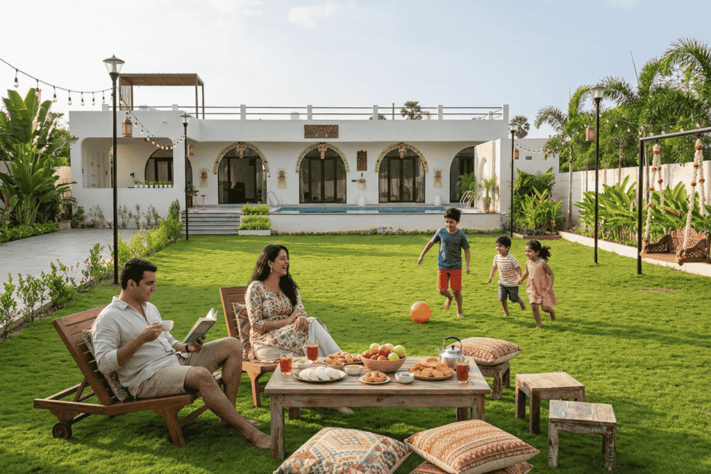 Bali Bliss Farm House offers a perfect blend of comfort, greenery, and peaceful vibes for your ideal getaway.