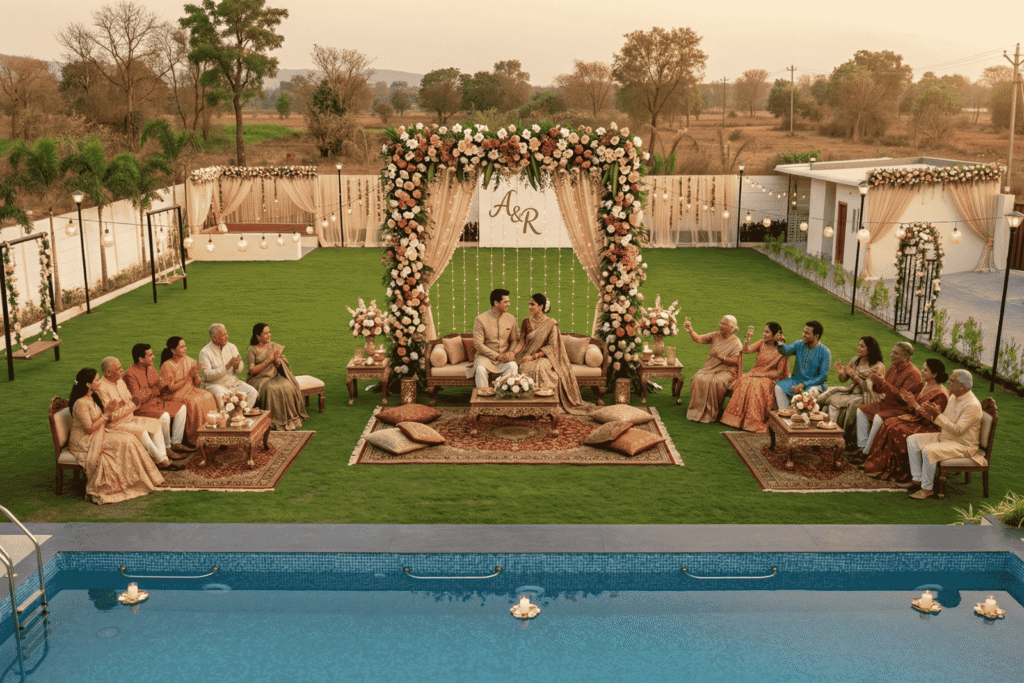 Escape the city and experience peaceful luxury at Bali Bliss Farm House Stay, a beautifully designed private farmhouse located near Ramoji Film City, Hyderabad. Inspired by Bali-style architecture, our farmhouse offers a perfect blend of nature, comfort, and modern amenities — ideal for weekend getaways, family gatherings, celebrations, and relaxing stays.